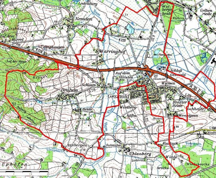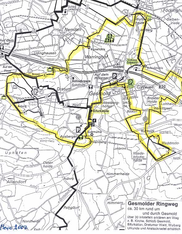 Besuchen Sie die Seite des Heimatvereins Gesmold. Dort ist der "Gesmolder Ringweg kurz beschrieben.